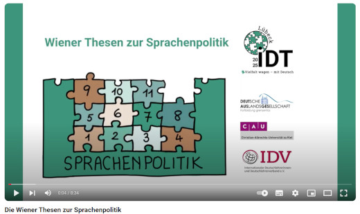 Auf der Internationalen Deutschlehrer:innen Tagung in Wien 2022 wurden 11+1 Thesen zur Sprachenpolitik formuliert, die sich an Politik und Fachwelt richten. Die Kurzfassung der Thesen… Weiterlesen »Videoprojekt: „Die Wiener Thesen zur Sprachenpolitik“