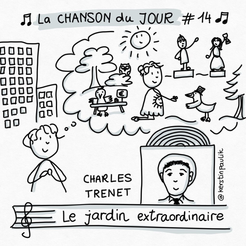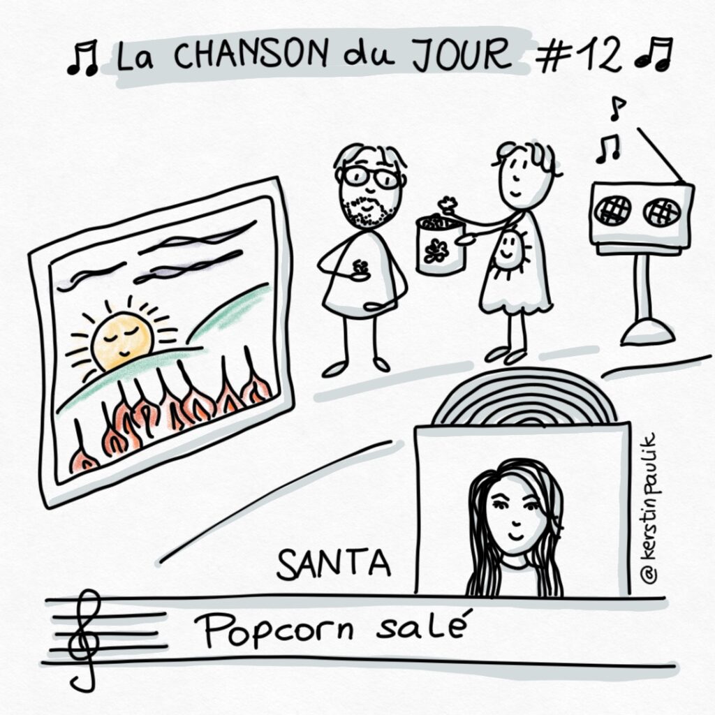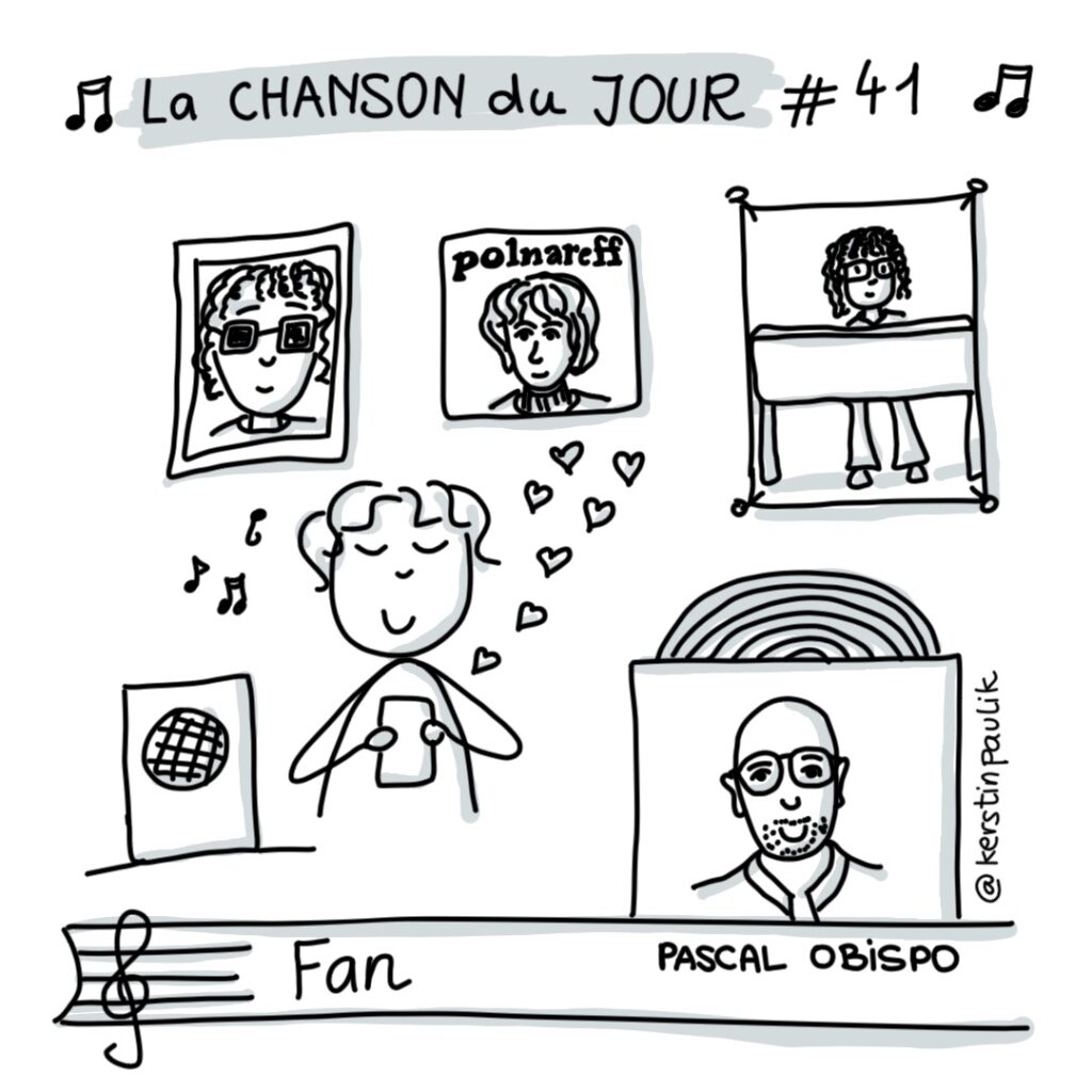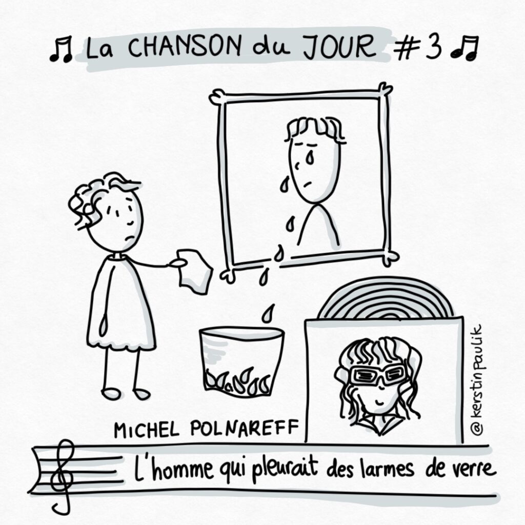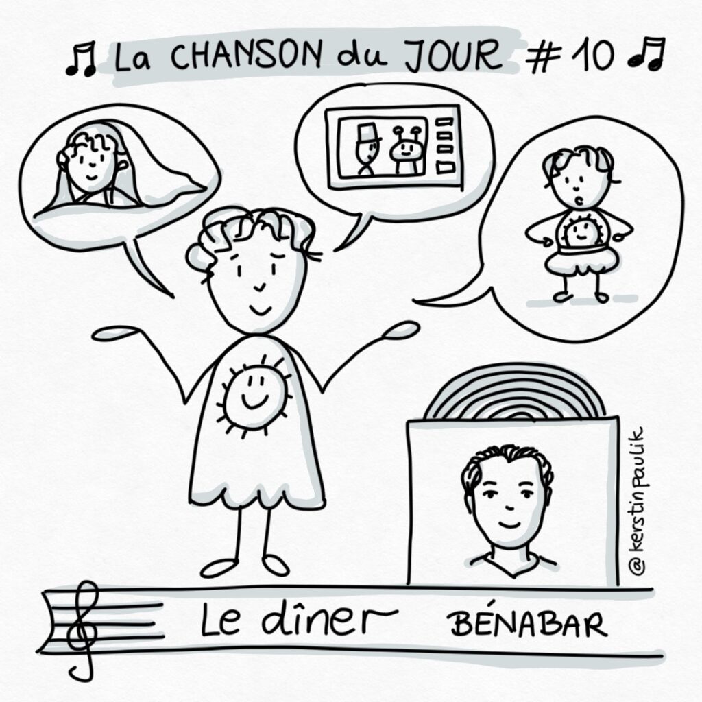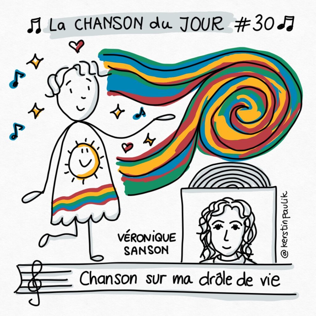 Ein Effekt dieses morgendlichen Zeichnens war, dass ich den ganzen Tag das Lied „My favorite things“ von Julie Andrews im Ohr hatte. 😉 Dabei kam mir dann die Idee, dass es auch lustig wäre, einmal Lieder zu zeichnen. Im Mai 2024 habe ich mich dann an ein Zeichenprojekt gemacht, bei dem ich jeden Tag ein französisches Lied, das mir gerade durch den Kopf ging, zeichnen wollte. Da ich ständig französische „Ohrwürmer“ habe, gab es dafür mehr als genug Stoff. 😉 Außerdem hatte ich mir gerade mein erstes iPad gekauft, wollte mich mit den erweiterten Funktionen meines Zeichenprogramms vertraut machen und das Zeichnen von Porträts üben.