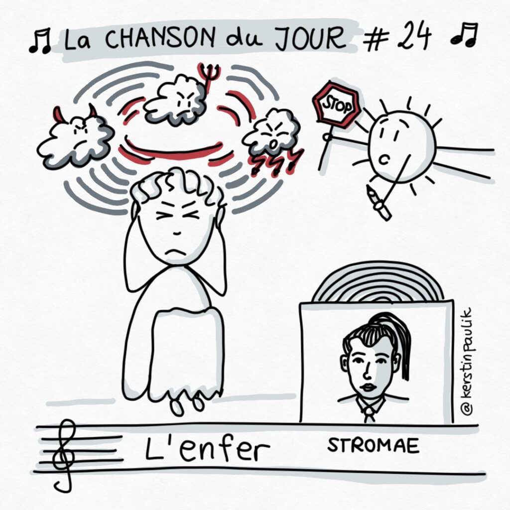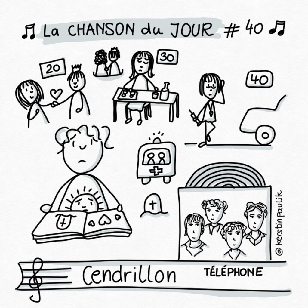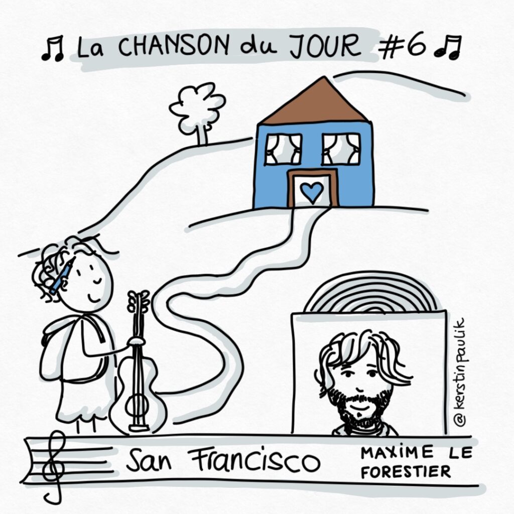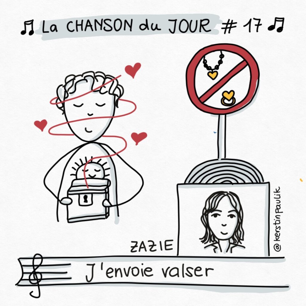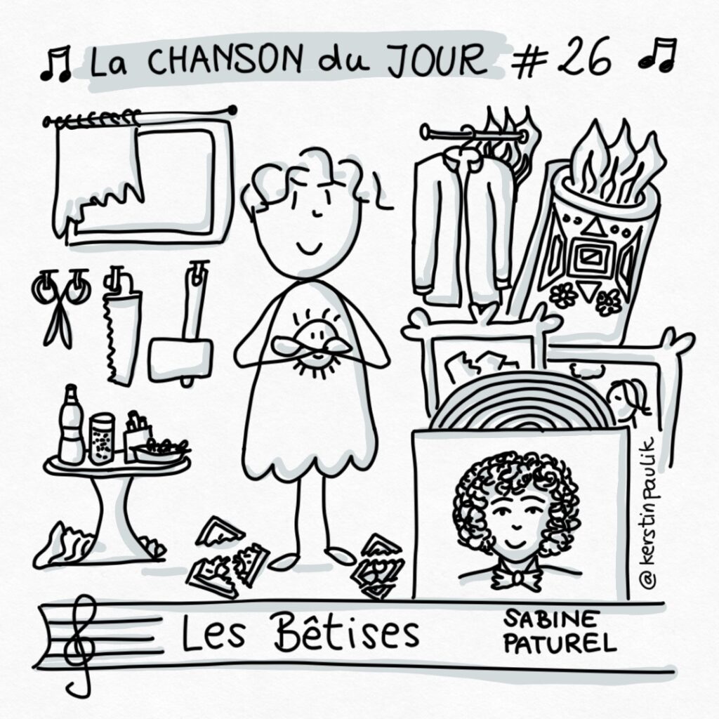 Ein Effekt dieses morgendlichen Zeichnens war, dass ich den ganzen Tag das Lied „My favorite things“ von Julie Andrews im Ohr hatte. 😉 Dabei kam mir dann die Idee, dass es auch lustig wäre, einmal Lieder zu zeichnen. Im Mai 2024 habe ich mich dann an ein Zeichenprojekt gemacht, bei dem ich jeden Tag ein französisches Lied, das mir gerade durch den Kopf ging, zeichnen wollte. Da ich ständig französische „Ohrwürmer“ habe, gab es dafür mehr als genug Stoff. 😉 Außerdem hatte ich mir gerade mein erstes iPad gekauft, wollte mich mit den erweiterten Funktionen meines Zeichenprogramms vertraut machen und das Zeichnen von Porträts üben.