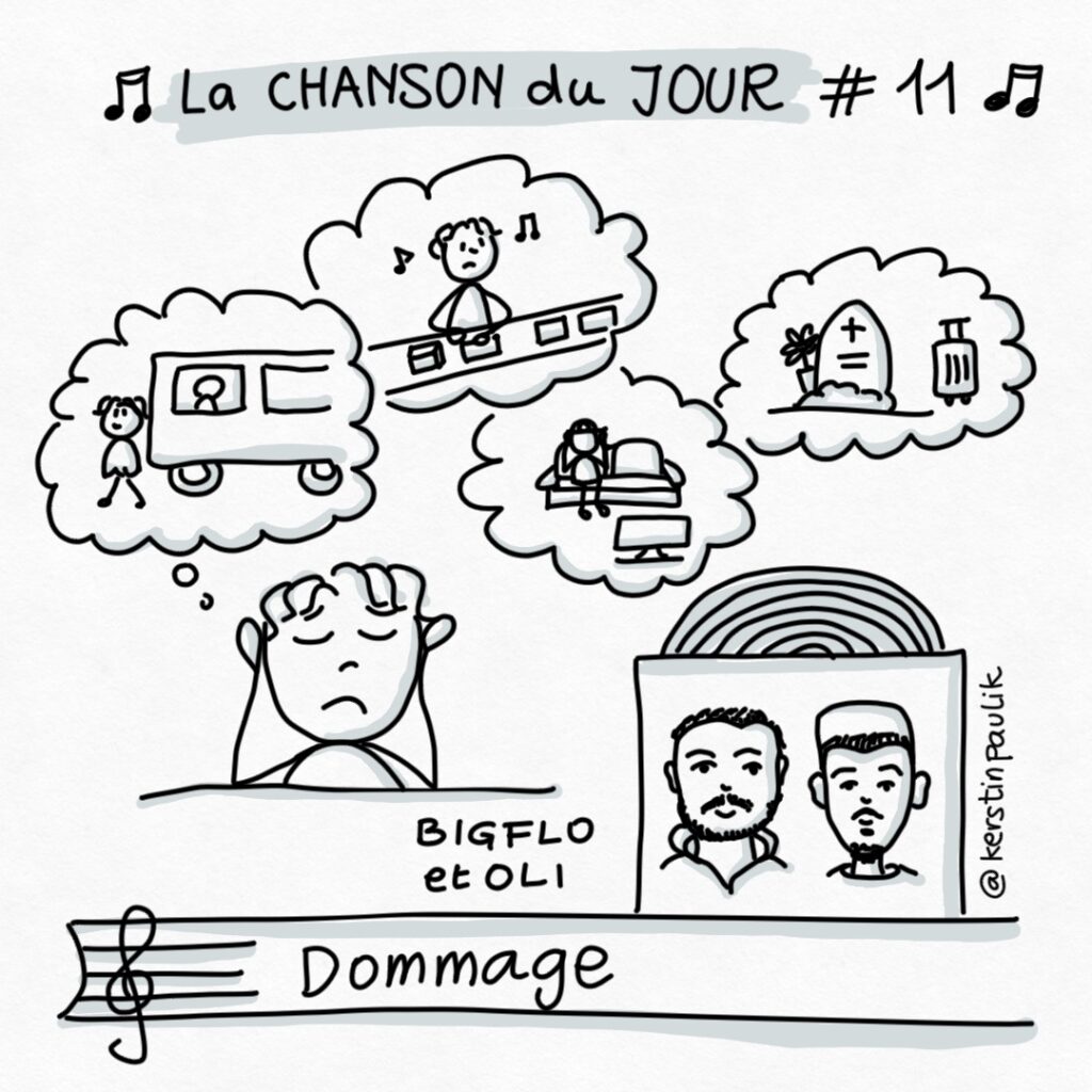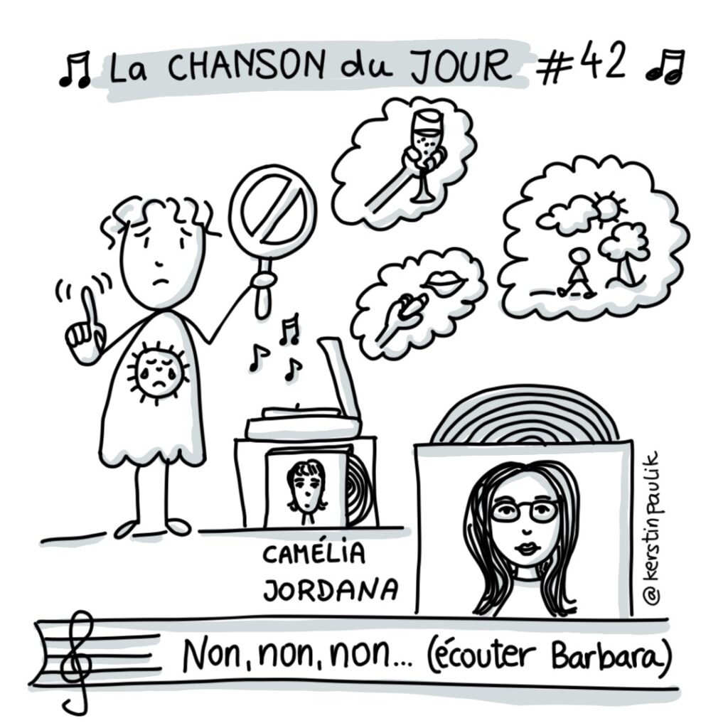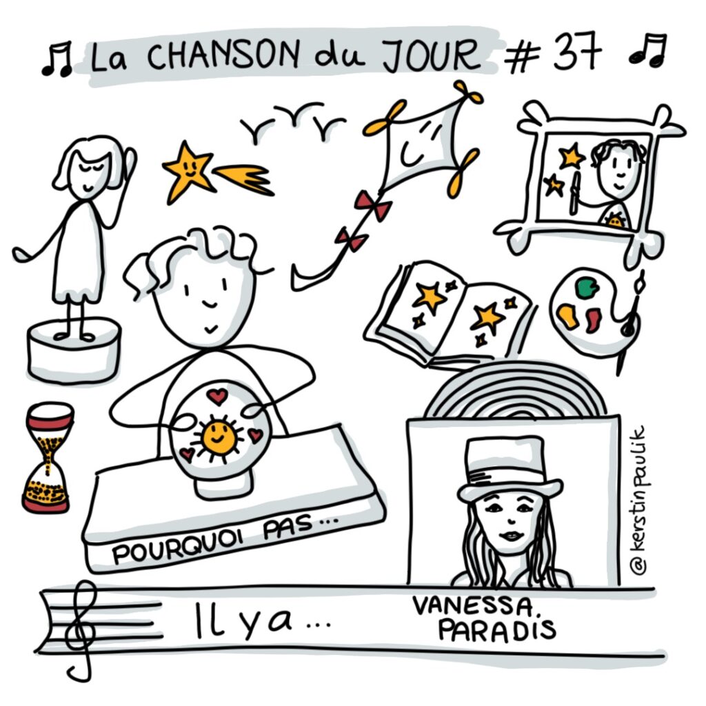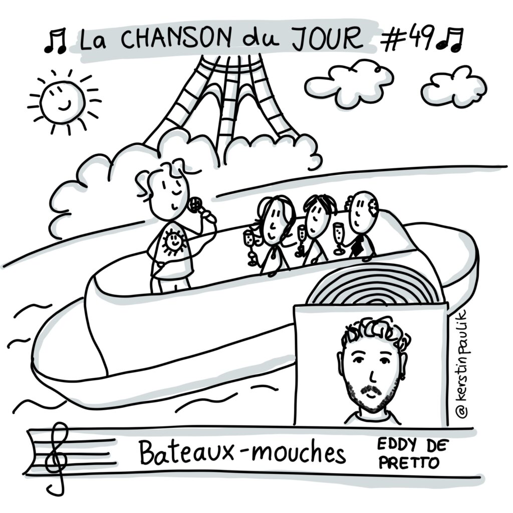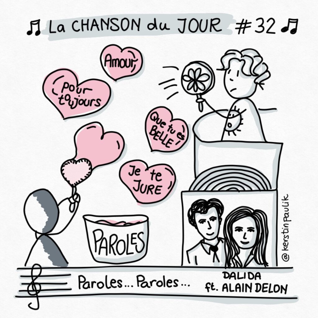 Ein Effekt dieses morgendlichen Zeichnens war, dass ich den ganzen Tag das Lied „My favorite things“ von Julie Andrews im Ohr hatte. 😉 Dabei kam mir dann die Idee, dass es auch lustig wäre, einmal Lieder zu zeichnen. Im Mai 2024 habe ich mich dann an ein Zeichenprojekt gemacht, bei dem ich jeden Tag ein französisches Lied, das mir gerade durch den Kopf ging, zeichnen wollte. Da ich ständig französische „Ohrwürmer“ habe, gab es dafür mehr als genug Stoff. 😉 Außerdem hatte ich mir gerade mein erstes iPad gekauft, wollte mich mit den erweiterten Funktionen meines Zeichenprogramms vertraut machen und das Zeichnen von Porträts üben.
