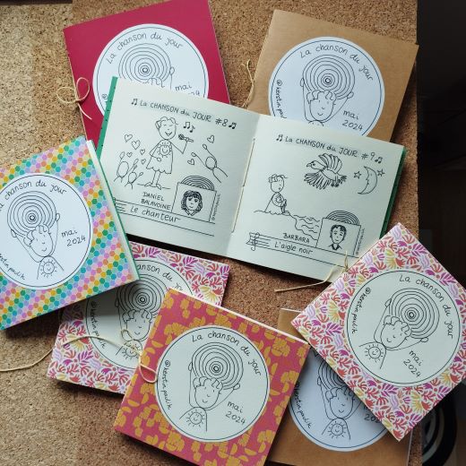 Nachdem mir immer noch ständig Lieder durch den Kopf gehen, habe ich jetzt mit Anfang August 2024 eine zweite Runde von „La Chanson du Jour“ gestartet. Prinzipiell habe ich wieder 16 Lieder angedacht, womit die kleinen Heftchen doppelt so dick werden. 😉 Vielleicht komme ich mit einer dritten Runde im Herbst bis Ende des Jahres aber auch auf 52 Lieder – dann könnte ich mir für 2025 einen Wochenkalender basteln, in dem jede Woche ein eigenes Lied hat. Das wäre auch nett! 🙂