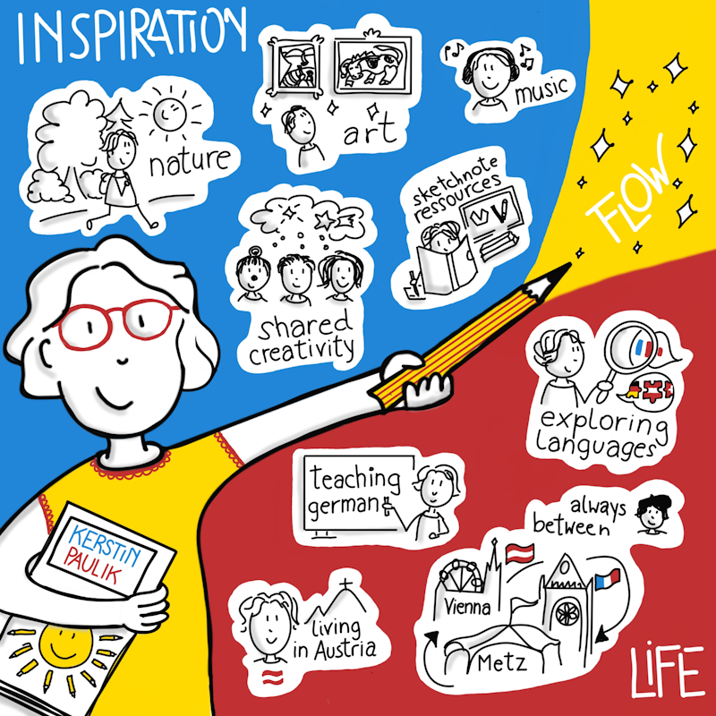 Ich mag Sketchnotes, weil sie nicht den Anspruch haben, perfekt zu sein und ich ganz einfach spielerisch kreativ sein kann. Ganz allgemein brauche ich Kunst und Kreativität in meinem Alltag, um glücklich zu sein. Ich liebe es, Ideen zu entwickeln, mich mit anderen kreativen Menschen über etwas Schönes zu freuen, Ausstellungen und Konzerte zu besuchen und interessante Details in der Natur und im Stadtbild aufzuspüren.
