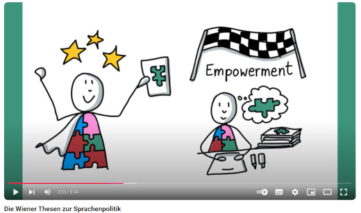 Bei der Internationalen Deutschlehrer:innen Tagung 2025 in Lübeck sollen die Wiener Thesen weiter entwickelt und diskutiert werden. Als Ausgangspunkt für diesen Diskussionsprozess sollte ein Video dienen, in dem die Thesen visualisiert werden. Ich wurde engagiert, um den Text in Bilder zu „übersetzen“ und zu animieren, was mir gerade auch deshalb, weil mich das Thema selbst betrifft und mir auch am Herzen liegt, viel Freude gemacht hat. Die Langversion des Videos ist jetzt seit Oktober 2024 auf YouTube zu sehen: https://youtu.be/gAL8Yth2_to?si=wLAqi1vl3O4_wCk7 .